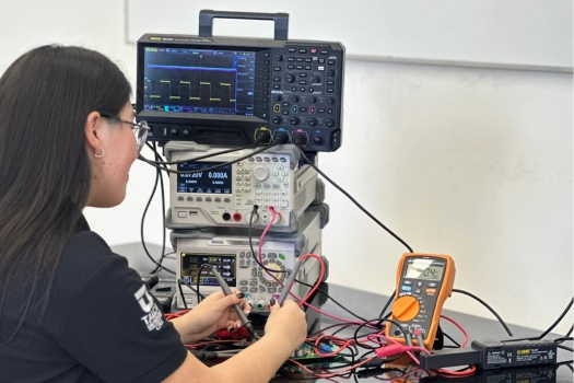 El laboratorio cuenta con modernos instrumentos de medición: osciloscopios digitales, sondas diferenciales, sondas de corriente, generadores de función, cargas electrónicas, fuentes de poder multicanal, fuentes programables, entre otros, que son utilizados de manera transversal en todos los laboratorios de la carrera.
