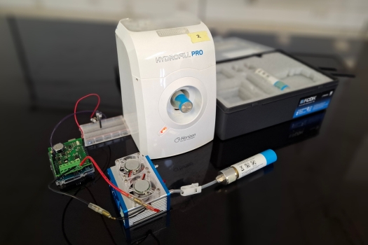 El laboratorio cuenta con diferentes kits para la experimentación con hidrógeno en sus diferentes etapas (hidrolizadores, celdas de combustible y almacenadores de hidrógeno).